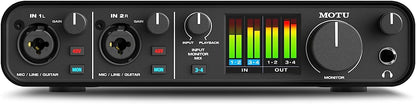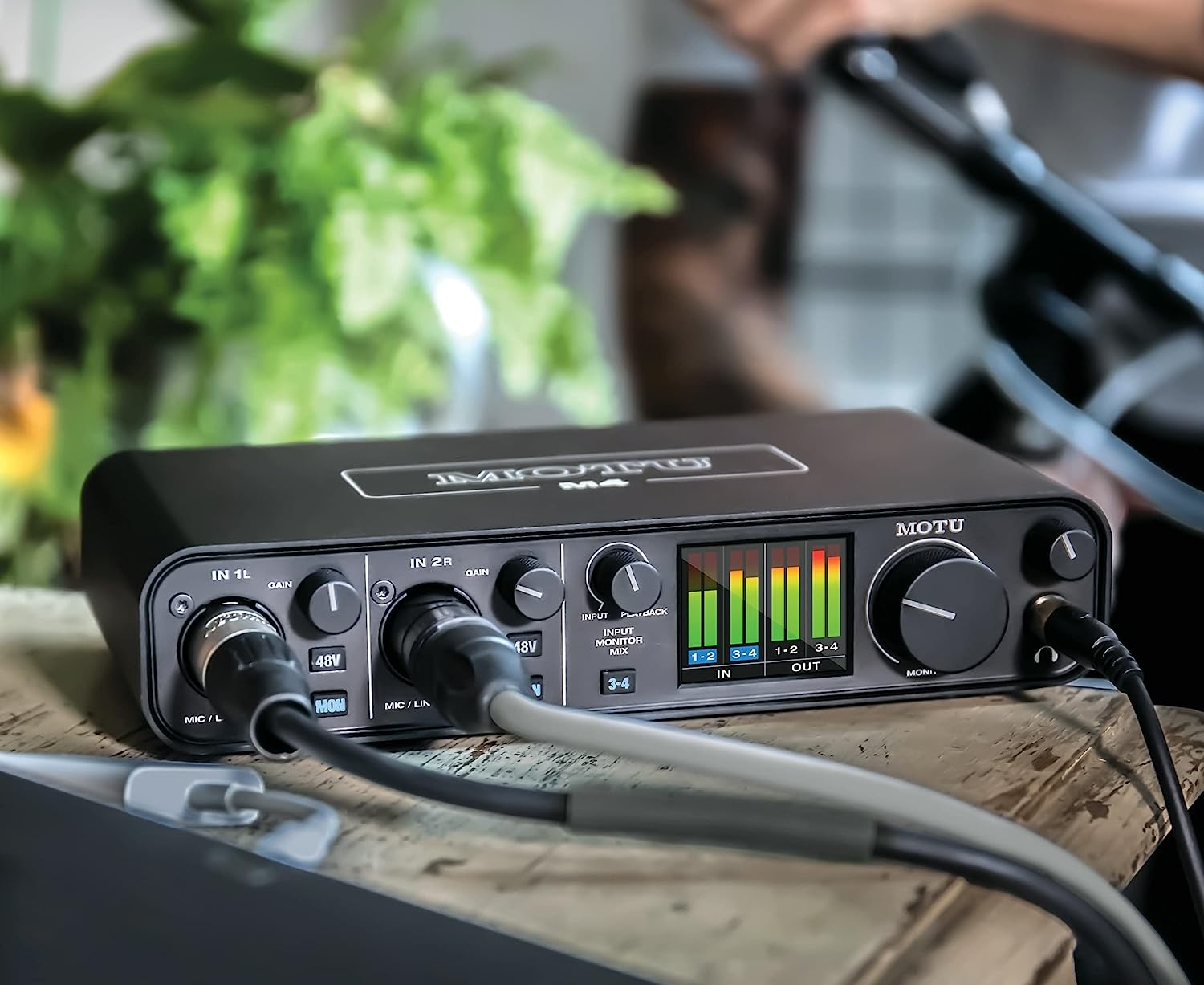 The M4 provides best-in-class speed for monitoring live inputs (mic, guitar or keyboard) through your computer, thanks to MOTU's expertly engineered USB drivers, which deliver class-leading, ultra-low 2.5 ms Round Trip Latency (at 96 kHz with a 32 sample buffer).