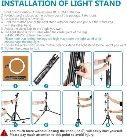 Raising the legs (tripods) too high may cause the light stand to fall and damage the ring light.