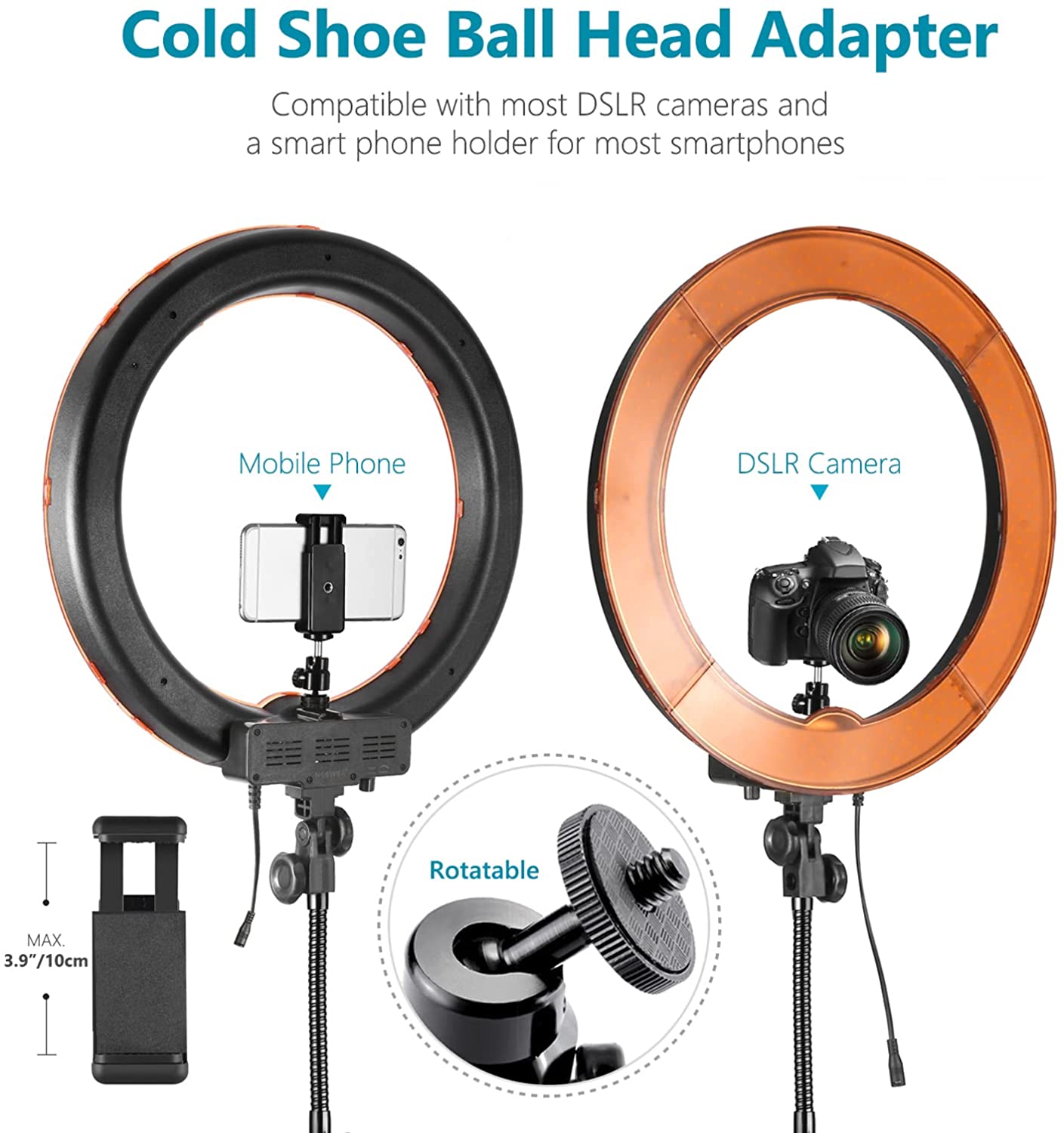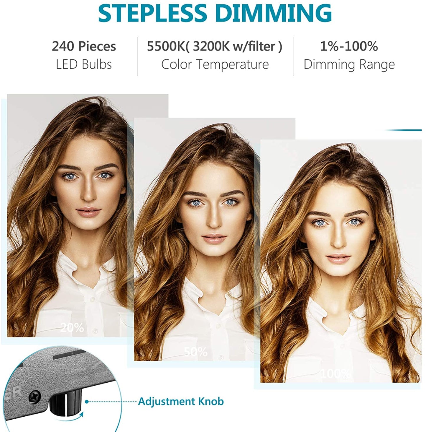 Dimmable 18"/48cm Outer 55W 5500K 240 Pieces LED bulbs with a wide dimming range from 1%-100%, making it easier to control the brightness of light when shooting.