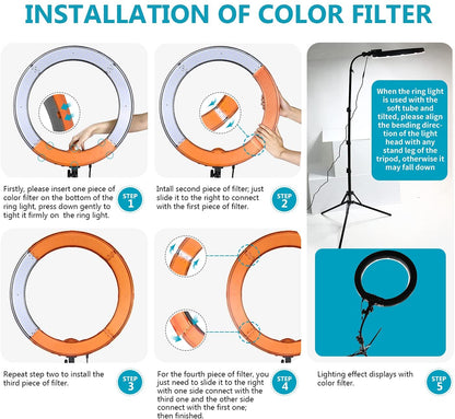 White and orange color filters are made of high light transmission plastic material with steady color temperature.  Easy to switch color temperature from 3200K to 5600K.
