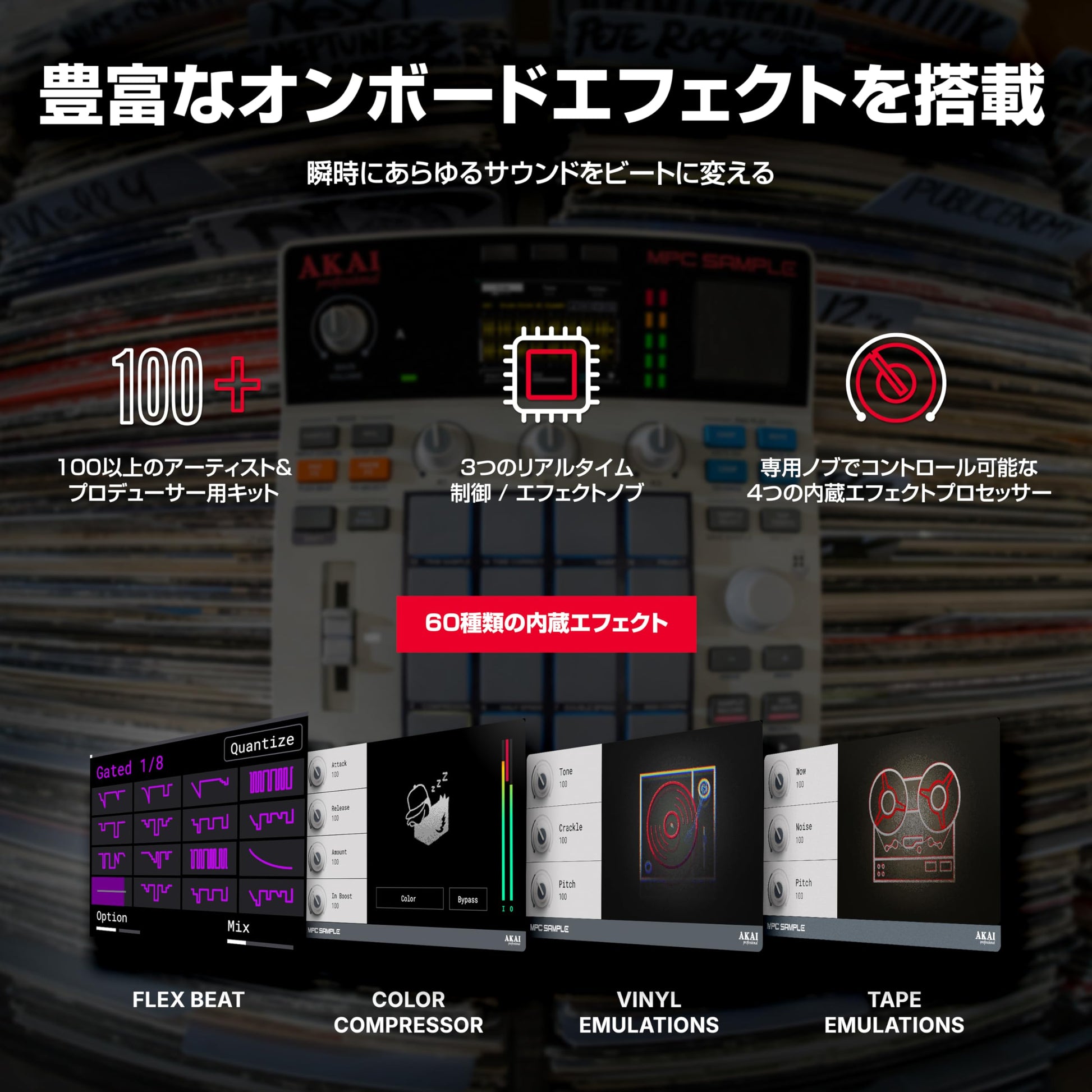• 60 effects including Pad FX, Knob FX, FlexBeat, Color-Compressor