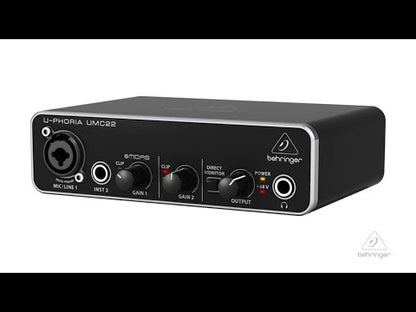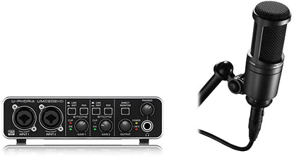 Audio Technica AT2020 Cardioid Condenser XLR Microphone Plus Behringer U-Phoria UMC22 USB Audio Interface Bundle