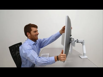 Arm folds back over the base into a compact retracted position; perfect for tucking under systems furniture storage shelves or cabinets in space constrained areas.
