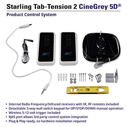 Starling Tab-Tension 2 CineGrey 5D® 系列 是一種電動可伸縮投影機螢幕,使用環境光阻擋材料。可伸縮功能為安裝螢幕提供了靈活性,而無需將其指定位置專門用於某一目的。
